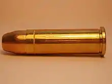 In 1956, the U.S. Air Force adopted the Cartridge, Caliber 38, Ball M41, a military variant of the .38 Special cartridge designed to conform to Hague Convention rules. The original 38 M41 ball cartridge used a 130-grain full-metal-jacketed bullet, and was loaded to an average pressure of only 13,000 pounds per square inch (90 MPa), giving a muzzle velocity of approximately 725 ft/s (221 m/s) from a 4-inch (100 mm) barrel.[17][18] This ammunition was intended to prolong the life of S&W M12 and Colt Aircrewman revolvers equipped with aluminum cylinders and frames, which were prone to stress fractures when fired with standard 38 Special ammunition. By 1961, a slightly revised M41 38 cartridge specification known as the Cartridge, Caliber 38 Ball, Special, M41 had been adopted for U.S. armed forces using 38 Special caliber handguns.[18] The new M41 Special cartridge used a 130-grain FMJ bullet loaded to a maximum allowable pressure of 16,000 pounds per square inch (110 MPa) for a velocity of approximately 950 ft/s (290 m/s) in a solid 6-inch (150 mm) test barrel, and about 750 ft/s (230 m/s) from a 4-inch (100 mm) revolver barrel.[19][20] The M41 ball cartridge was first used in .38 Special revolvers carried by USAF aircrew and Strategic Air Command security police, and by 1961 was in use by the U.S. Army for security police, dog handlers, and other personnel equipped with 38 Special caliber revolvers.[20] A variant of the standard M41 cartridge with a semi-pointed, unjacketed lead bullet was later adopted for CONUS (Continental United States) police and security personnel.[18] At the same time, .38 Special tracer cartridges were reintroduced by the US Navy, Marines, and Air Force to provide a means of emergency signaling by downed aircrew. Tracer cartridges in .38 Special caliber of different colors were issued, generally as part of a standard aircrew survival vest kit.