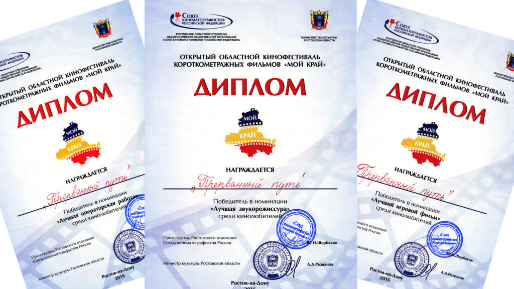 - ↑ For the best feature film, for the best sound and cinematography at the Rostov regional short film competition "My land"