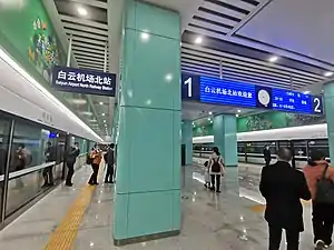 The station serves Guangzhou Baiyun International Airport and is an interchange with Airport North station on Line 3 of the Guangzhou Metro.