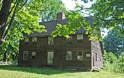 The historic district is linear, extending from a farmstead on the east side of Locust Street a short way south of the main intersection to a group of three 18th-century houses on the west side of Harmony Hill Road north of the junction. The district's properties are well spaced, and a range in sizes up to 20 acres (8.1 ha). The district as a whole is 103 acres (42 ha) in size. Houses are typically 2-1/2 stories in height, and of wood frame construction. The oldest is that of Jonathan Brace, built about 1730; other houses included two that have been converted from 19th-century barns, and one that was adapted from the 18th-century school building in the 19th century. Two 18th-century houses built by Abraham Catlin's son Abijah define the main intersection.[2]