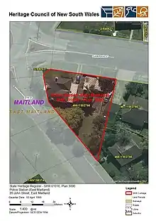 - 1 2 3 4 5 6 7 8 "Police Station (East Maitland)". New South Wales State Heritage Register. Department of Planning & Environment. H01016. Retrieved 2 June 2018.