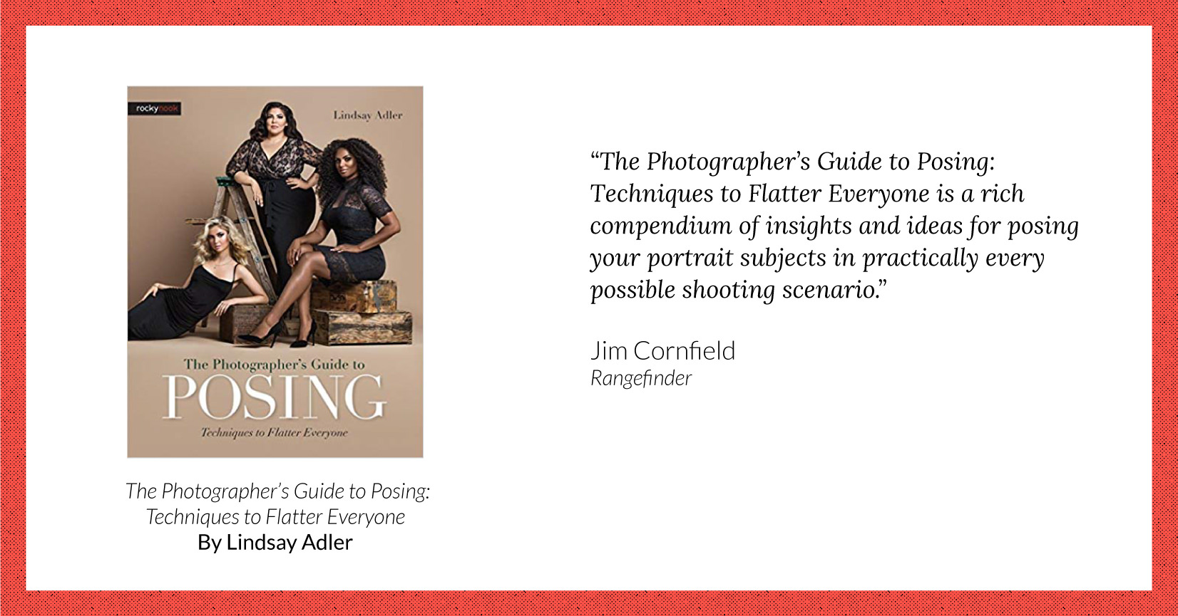 - ↑ Lindsay Adler (2017). The Photographer's Guide to Posing. Rocky Nook. ISBN 978-1681981949.
