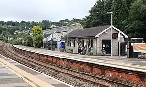 Lostwithiel railway station (Cornish: Lostwydhyel) serves the town of Lostwithiel in Cornwall, England. It is 277 miles 36 chains (277.45 mi; 446.5 km) from the zero point at London Paddington measured via Box and Plymouth Millbay.[1] Great Western Railway operates the station along with every other station in Cornwall.