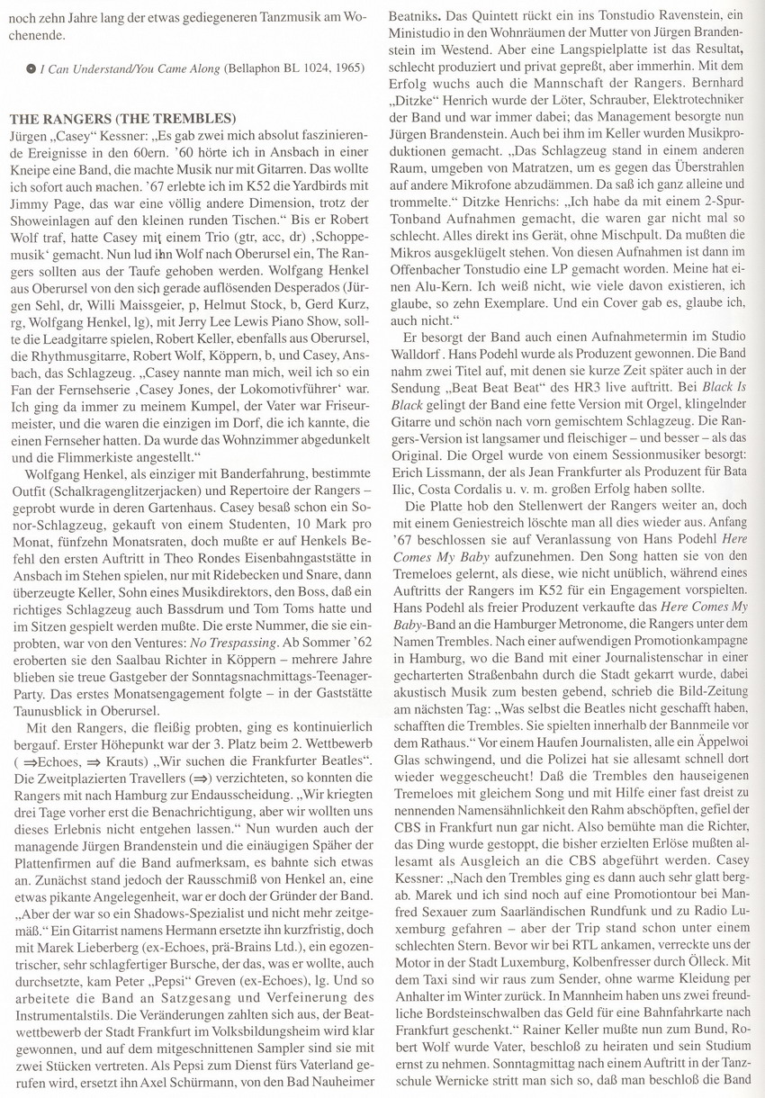 He played from 1964 till 1967 in the band The Rangers (consisting of: Ludwig Ickert, Robert Wolf, Marek Lieberberg, Jürgen Kessner & Axel Schürmann). They also named themself The Trembles and The Sad Sack Set. [4][5] On 21 October 1966, they were guests on the German television show Beat Beat Beat.[6][7] The band is also featured in the book "Die Beat Bible". In 1967, the newspaper Bild wrote articles about them. CBS sued them on 24 February 1967 because the name of a band under CBS contract sounded very similar. They lost the case and gave the money they made by selling their music to CBS. They renamed to "New Rangers" but split up shortly after.[8]