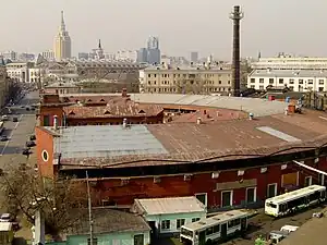 Novoryazanskaya Street Garage, also spelled Novo-Ryazanskaya Street Garage, and known as "Horseshoe garage", was designed by Konstantin Melnikov and Vladimir Shukhov (structural engineering) in 1926 and completed in 1929 at 27, Novoryazanskaya Street in Krasnoselsky District, Moscow, Russia, near Kazansky Rail Terminal. This garage is still used as such, and houses Moscow's Fourth Bus Park.