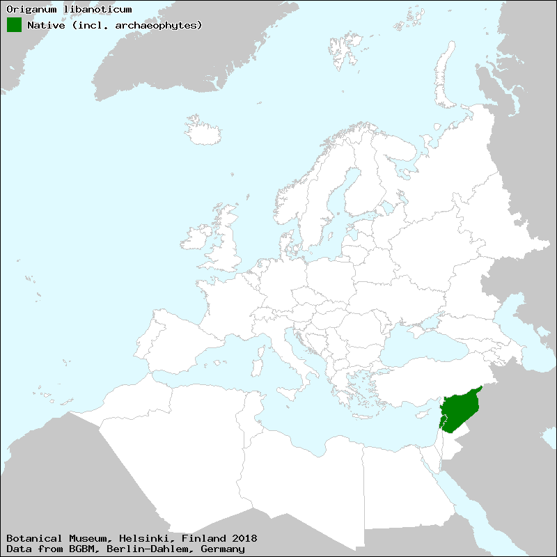 - ↑ "Distribution map for Origanum libanoticum". The Euro-Med PlantBase Project. Retrieved 21 January 2014.