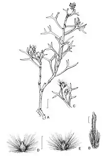 | A=flowering branchlet; B=flower; C=fruiting branchlet; D,E=upper and lower surfaces of nut | |
