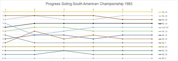 This article stated the results of the South American Soling Championships from 1971 till 1979. Not all crew names are documented in the major sources: United States Soling Association (USSA) bulletin "Leading Edge" and International Soling Association (ISA) magazine "Soling Sailing".