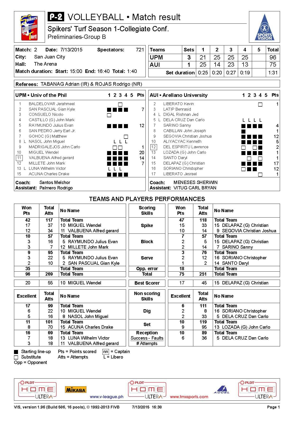 3-1 | 21-25 | 25-14 | 25-23 | 25-13 | 96-75 | P2 | ||