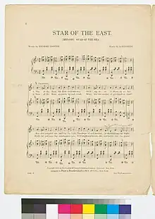 The words were written by New York lyricist George Cooper in 1890. The music was arranged by composer Amanda Kennedy in 1883, for a song called "Star of the Sea". It is not to be confused with several similarly named carols, including an American folk carol named "Star in the East" and an English carol titled "Star of the East" or "Brightest and Best".[1]