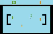 Video Olympics is a video game programmed by Joe Decuir for the Atari 2600. It is one of the nine 2600 launch titles Atari, Inc. published when the 2600 system was released in September 1977. The cartridge is a collection of games from Atari's popular arcade Pong series. A similar collection in arcade machine form called Tournament Table was published by Atari in 1978.[2]