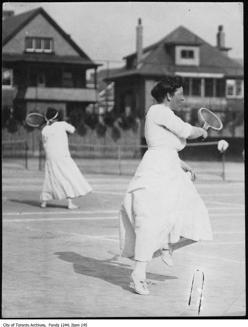 - A photograph of Violet Summerhayes playing tennis in 1908, from the Toronto Guardian.