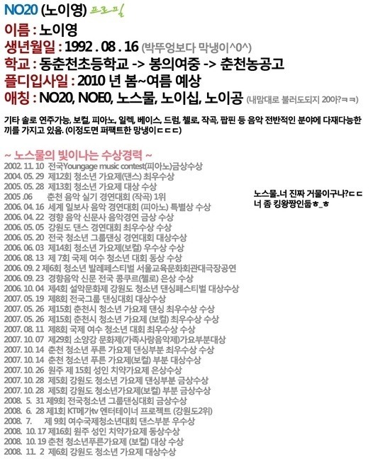 - 2007年5月26日 第15回春川市青少年歌謡祭(歌唱)最優秀獎