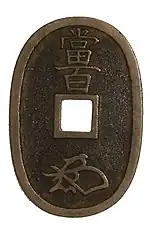 該硬幣鑄造于1835年(天保6年)。該货币的法定价值为100文,因而被称为“當百錢”,但实际上是當作80文的價值流通的。无论如何,从数量上看,该硬币不值其面值(100枚一文錢的宽永通寶),并且造成了经济混乱,且出現了一系列的假币。明治维新后也曾流通,但于1891年12月31日正式停止流通[4] ,并于1896年底(明治29年)停止与新币兑换[5] [注 1] 。