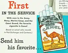骆驼(英語:)是一款美国的香烟品牌,创始于1913年。[1]目前在美国国内由R·J·雷諾茲烟草公司生产,在世界其他地区由日本烟草产业株式会社生产。[2][3]当今的骆驼烟含有由土耳其烟草和弗吉尼亚烟草(来自北卡罗来纳温斯顿-塞勒姆,该品牌的创始地)混合而成的组合。[4]
